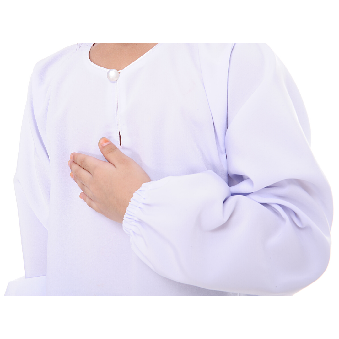 Saiz bertindih – sebagai contoh, sekiranya Si Comel puan bersaiz biasa rakan sebaya berusia 8 tahun, in shaa Allah saiz SS sesuai. Namun jika puan rasa, beliau besar sedikit, in shaa Allah puan boleh cuba saiz S. Namun kita sangat sarankan puan mengukur dahulu agar mendapat saiz yang lebih ideal.