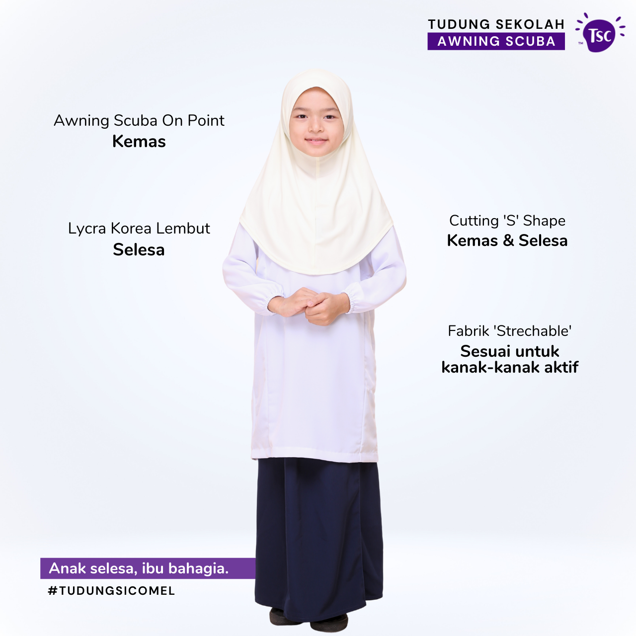 Jadi awning tudung akan lebih terbentuk(on-point) apabila dipakai dan lebih kemas. Kurangkan masalah awning tudung kelepet-kelepet dan sesuai untuk kanak-kanak yang aktif di sekolah.