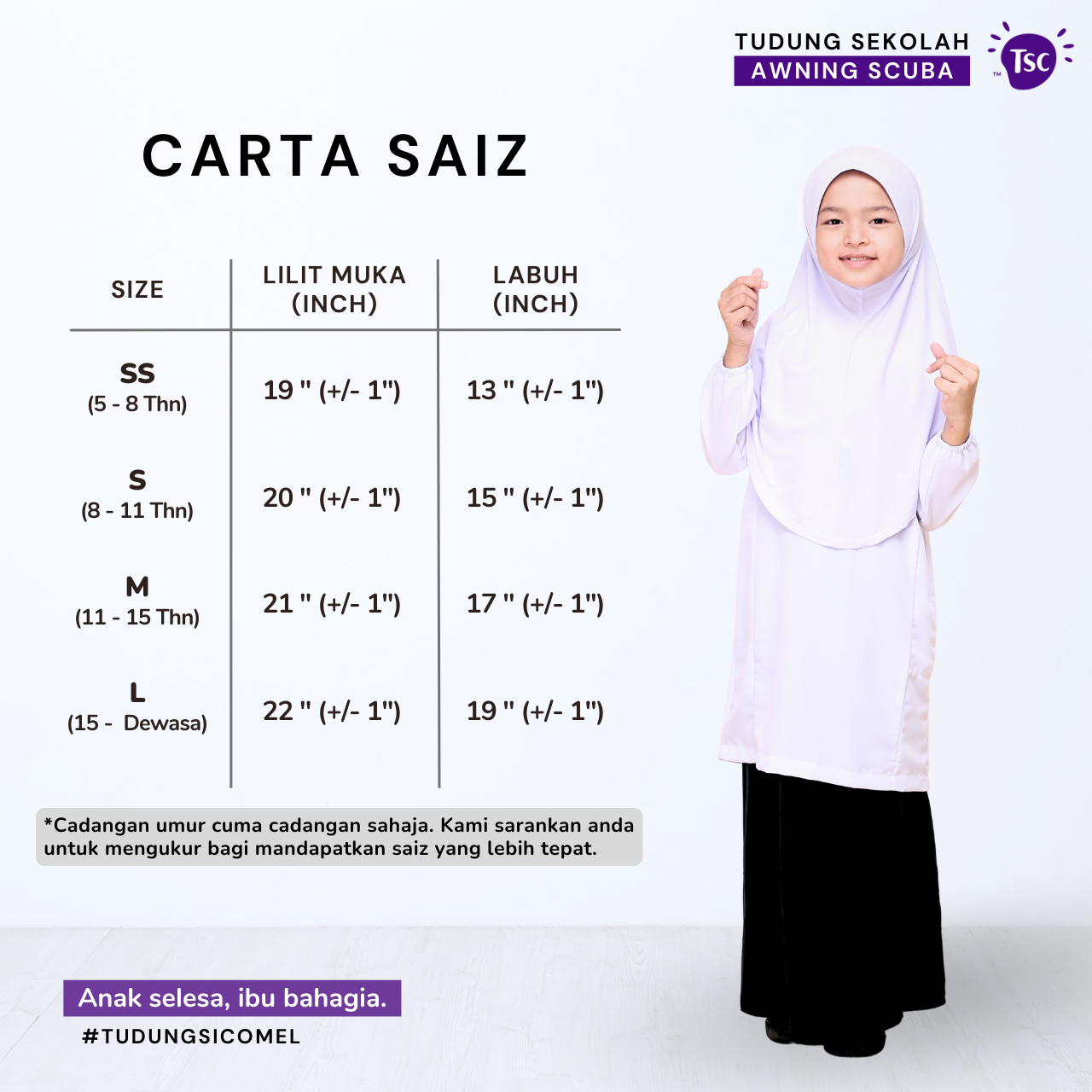 # Size SS sesuai untuk Si Comel berusia 5 – 8 tahun (bersaiz badan kecil).